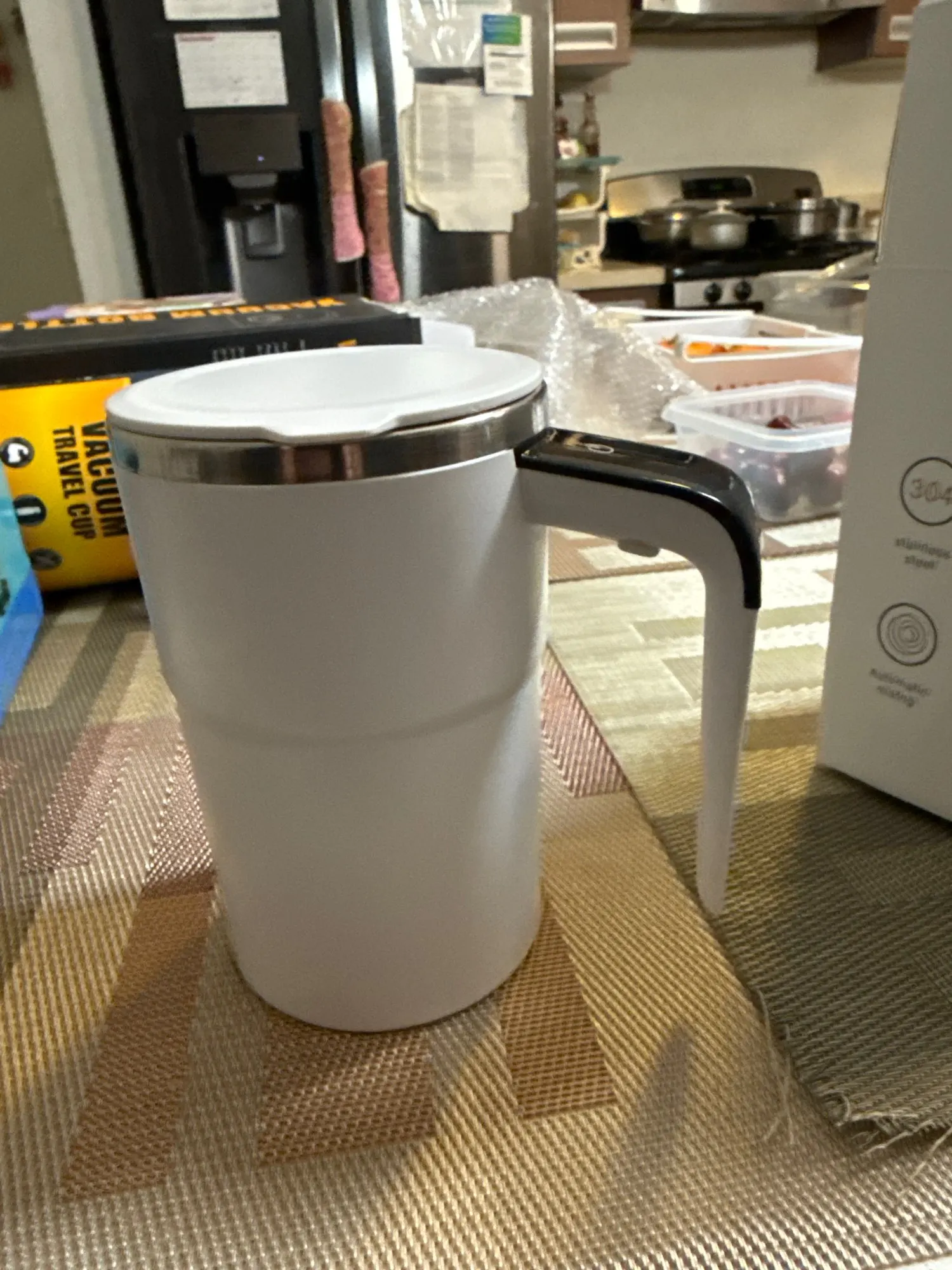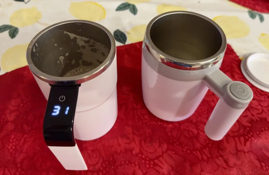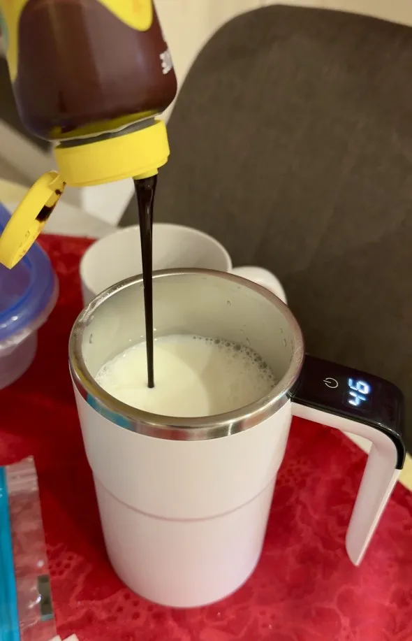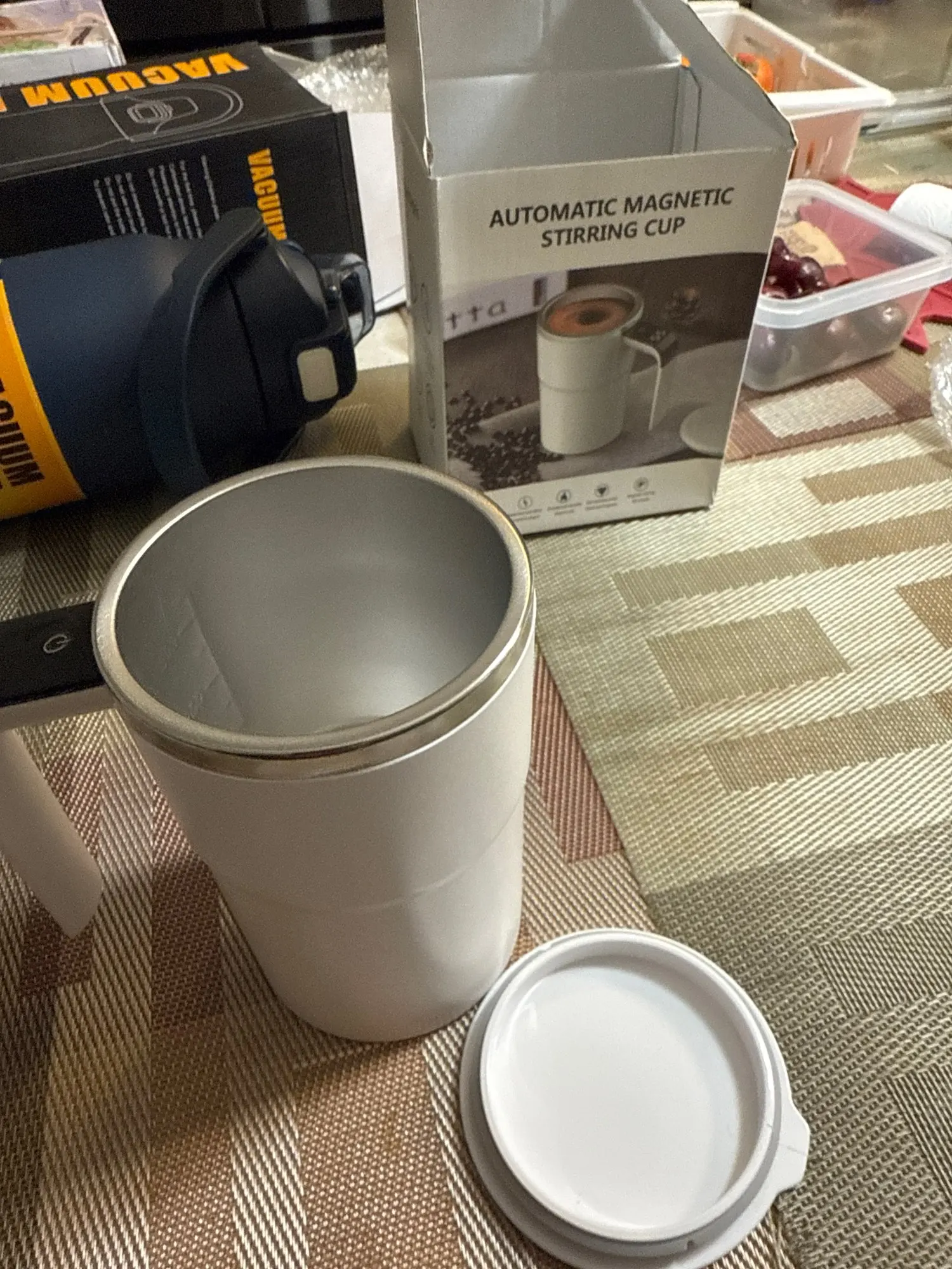 Drücken Sie einfach die automatische Mischtaste am Magnetbecher, und die Rührstange an der Unterseite dreht sich, was das Mischen von Getränken erleichtert. Verabschieden Sie sich von manuellem Mischen und genießen Sie die perfekte Mischung aus Getränken. Drücken Sie erneut, um das Mischen zu beenden und die Bequemlichkeit, Sicherheit und Vielseitigkeit dieser Tasse zu erleben. Abnehmbare magnetische Rührstange, korrosionsbeständig, leicht zu reinigen, fest am Boden der Tasse befestigt, um das Verschlucken zu vermeiden.