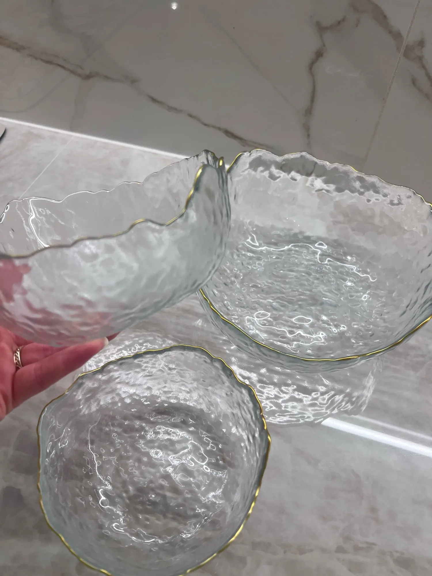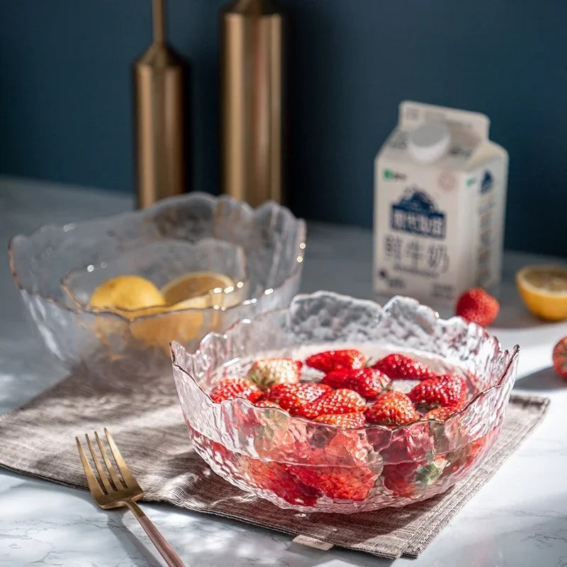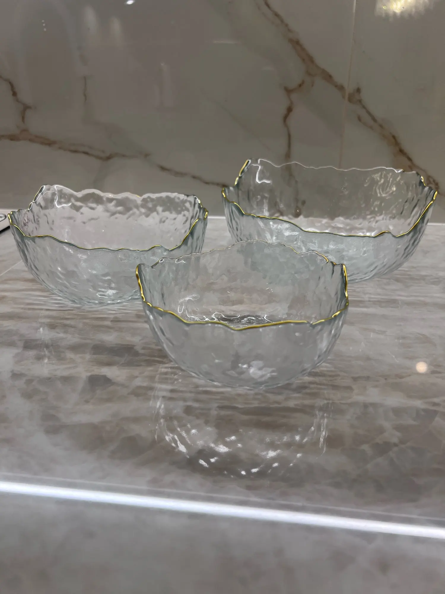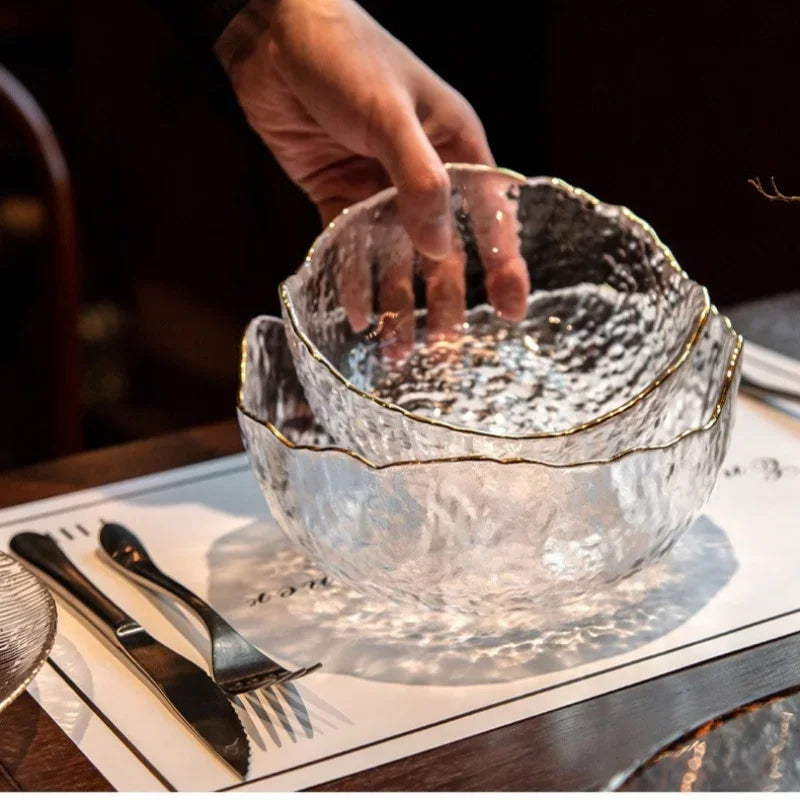 Japanischen Stil Eisberg Glas Schüssel mit Glod Rand Transparent Salat Obst Suppe Dessert Snack Lebensmittel Rührschüssel Tee Waschen Große