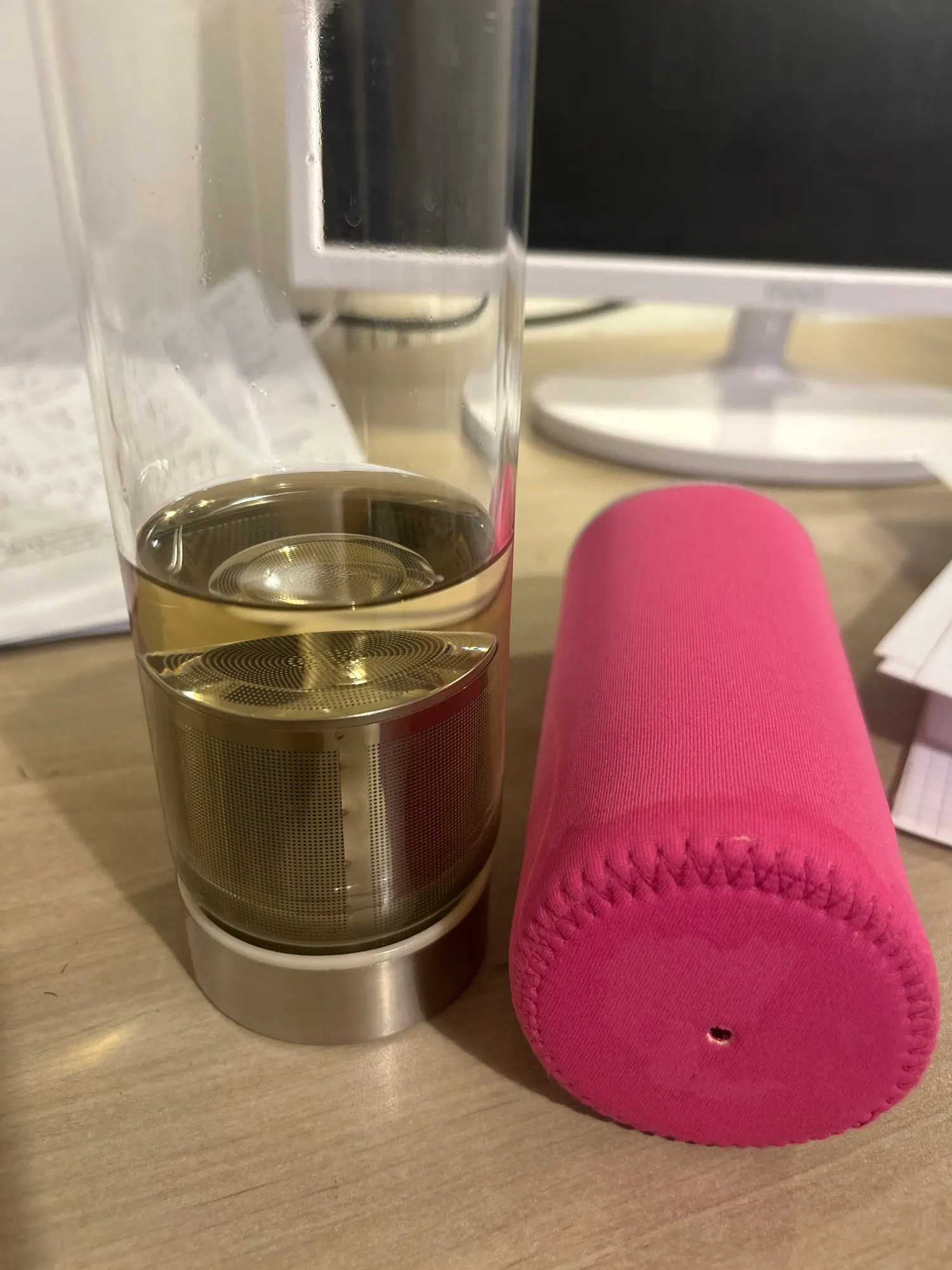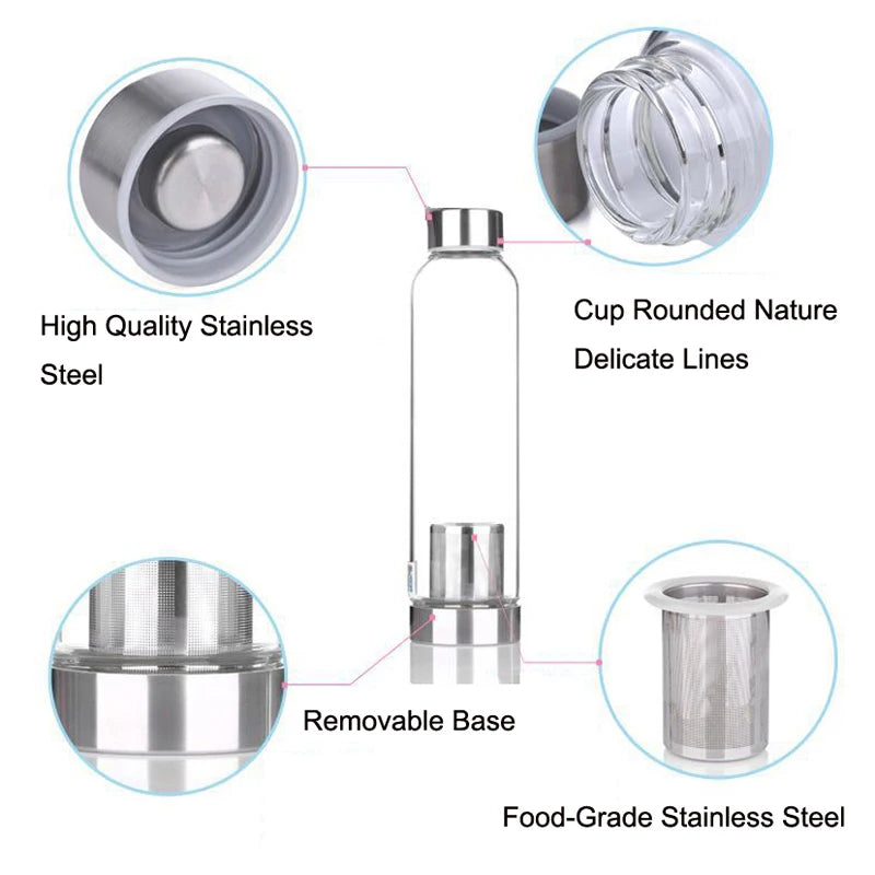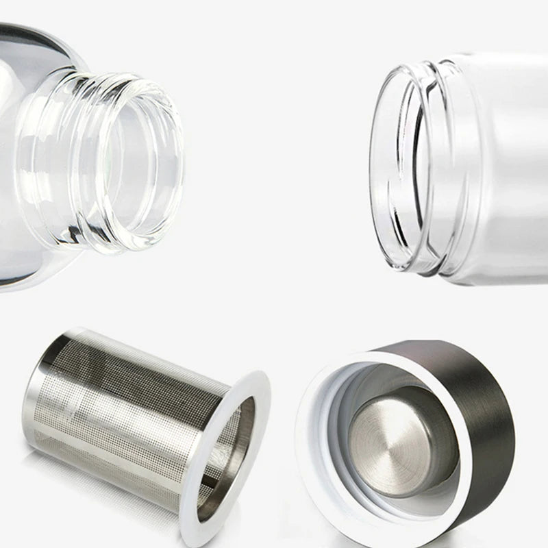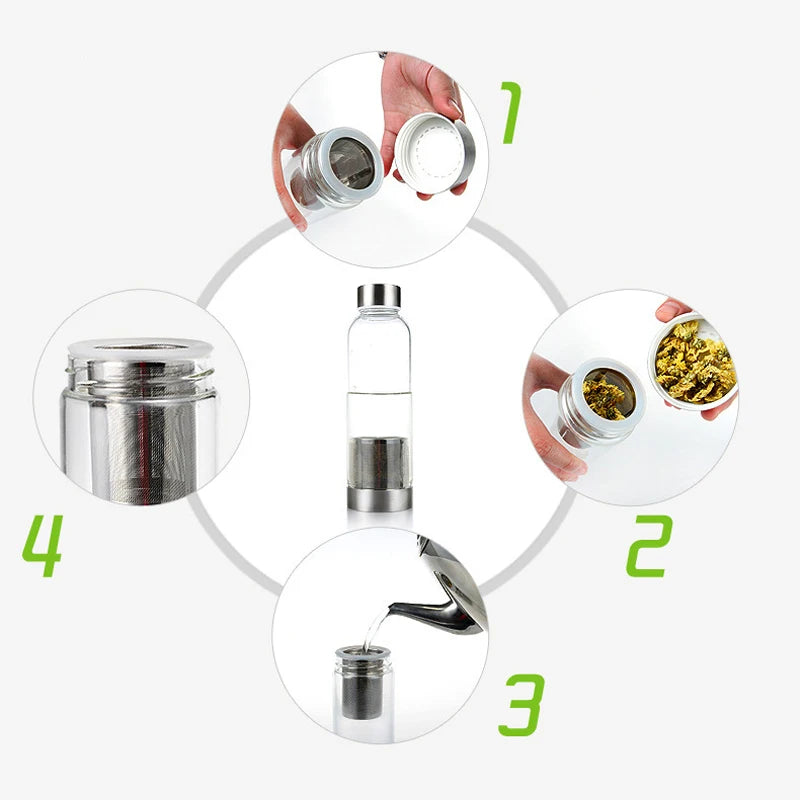 Hochtemperaturbeständige Glas-Sport-Wasserflasche mit Tee-Infuser + Schutzbeutel-Wasserflasche